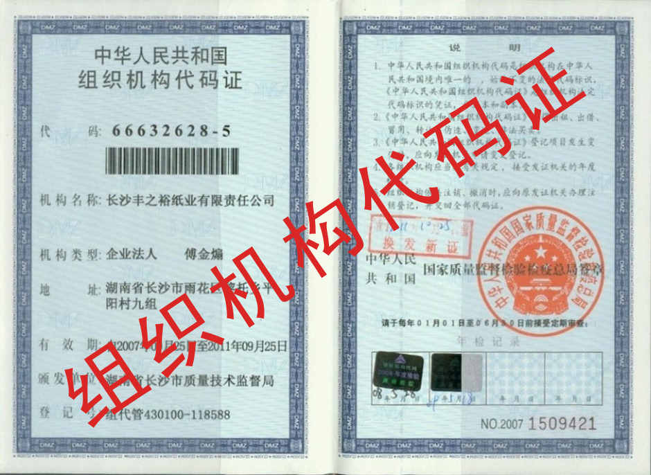 組織機構代碼證 東莞市XXX有限公司遺失組織機構代碼證正副本,代碼:66499999-1,有效期: