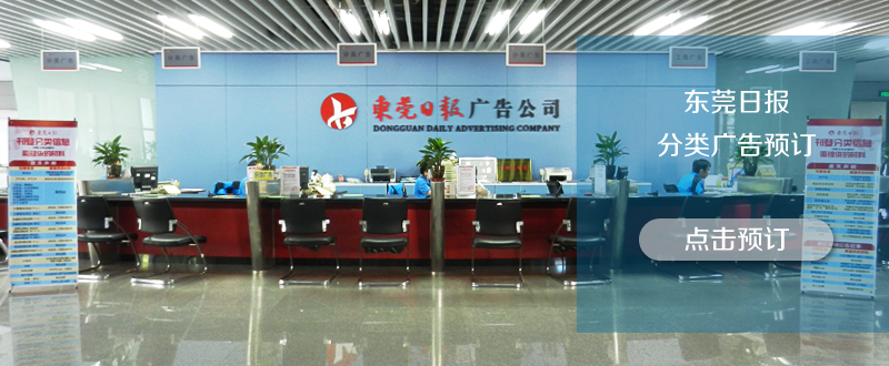 東莞登報平臺是:網(wǎng)上廣告預(yù)訂平臺,目前可以辦理、廣州日報登報、東莞日報登報、遺失聲明、公告啟事、廣告業(yè)務(wù)【當(dāng)天辦理、次日見報】在線辦理、在線支付、方便快捷、東莞登報平臺:是廣受用戶歡迎的網(wǎng)上受理平臺。東莞日報電話:0769-89977105東莞日報登報、東莞日報廣告價格、東莞登報網(wǎng)上辦理平臺。東莞日報地址:東莞市南城區(qū)三元路8號東莞報業(yè)大廈一樓辦理大廳。《東莞日報》是東莞市委主管主辦的現(xiàn)代政經(jīng)大報,榮列“全國最具品牌價值地市報十強(qiáng)”、“中國地市報報業(yè)發(fā)展50強(qiáng)”是廣東地市級零售量最大、本土新聞量最大、最好看的報紙,是與讀者互動性最強(qiáng)、最溫暖、最適合東莞市民閱讀的報紙。