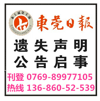 溫馨提示:微信辦理丨東莞登報平臺 刊登熱線:0769-22868041 客服電話:136-8666-911